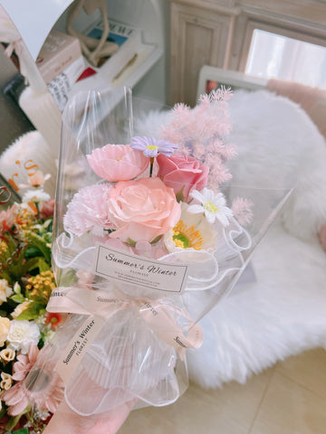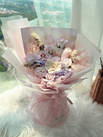 Soap Preserved Flowers: Indulge in the delicate allure of soap-preserved flowers. These exquisite creations are handcrafted with high-quality soap petals that replicate the scent of fresh flowers, offering a unique twist on traditional preserved bouquets.