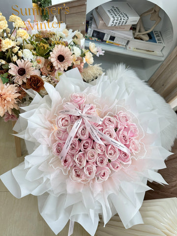 Fresh Roses (66 Stalks) beautifully crafted and wrapped in cloud white wrapping Feel the 'Amorousness' of this 66...