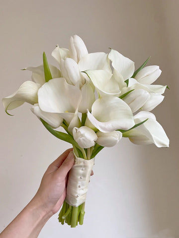 FLOWERS USED: Tulips & Cala Lilies For more information on the bridal bouquets, do whatsapp...