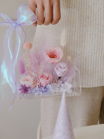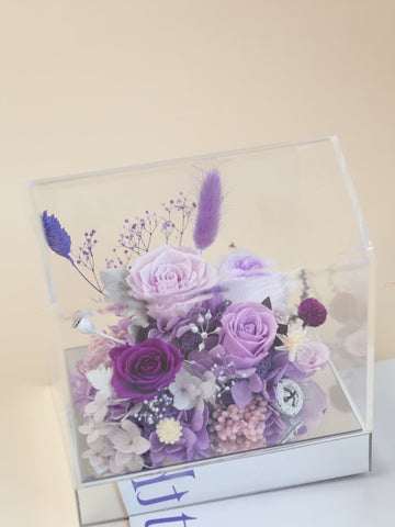 Preserved flowers in acrylic box Approximate Size : 18cm x 24cm ready to gift box packaged Care...