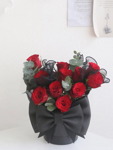 Fresh Red Roses (999 Stalks) beautifully crafted and wrapped in black wrapping and finished a wine...