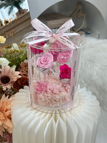 Our very own signature Acrylic Crystal Ball Box. With selections of preserved rose and dried flowers,...