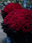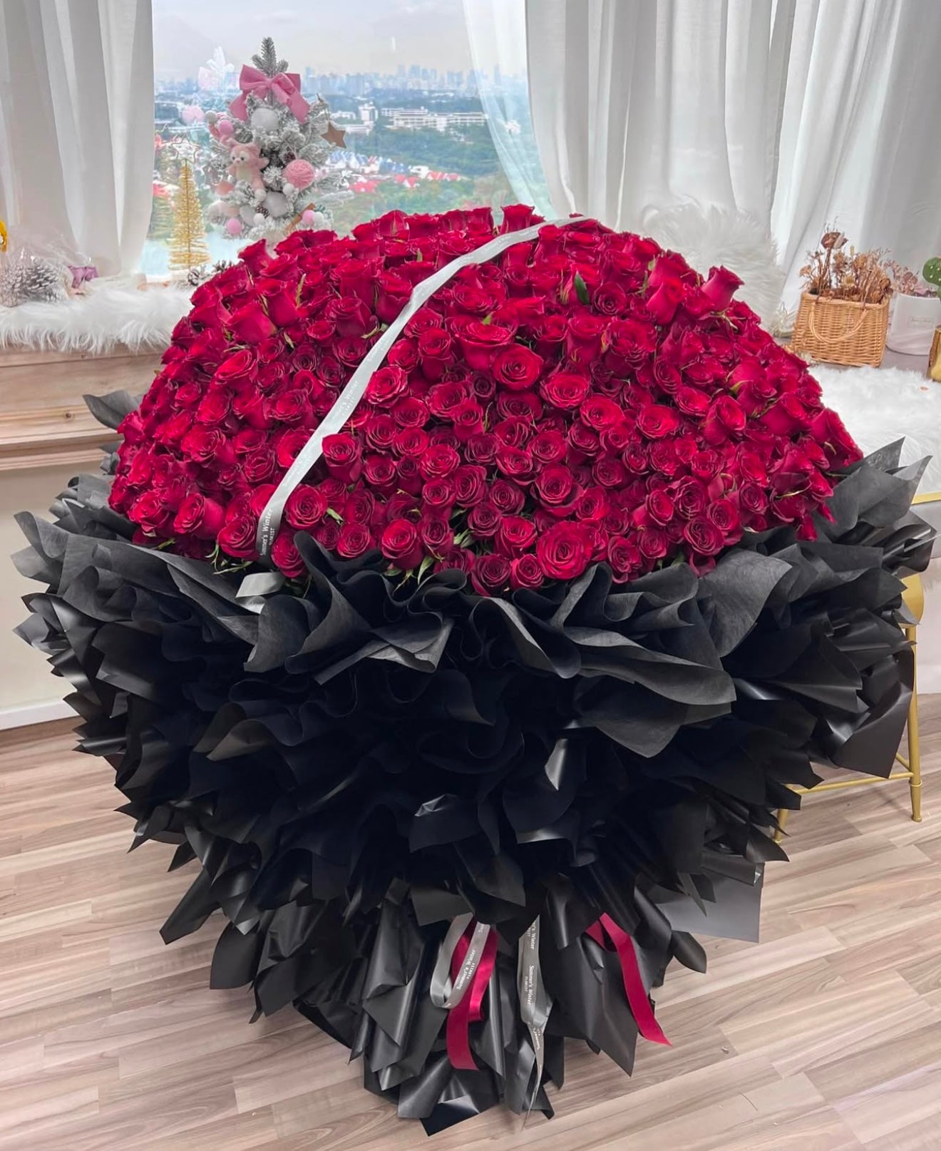 Fresh Red Roses (999 Stalks) beautifully crafted and wrapped in black wrapping and finished a wine red ribbon.