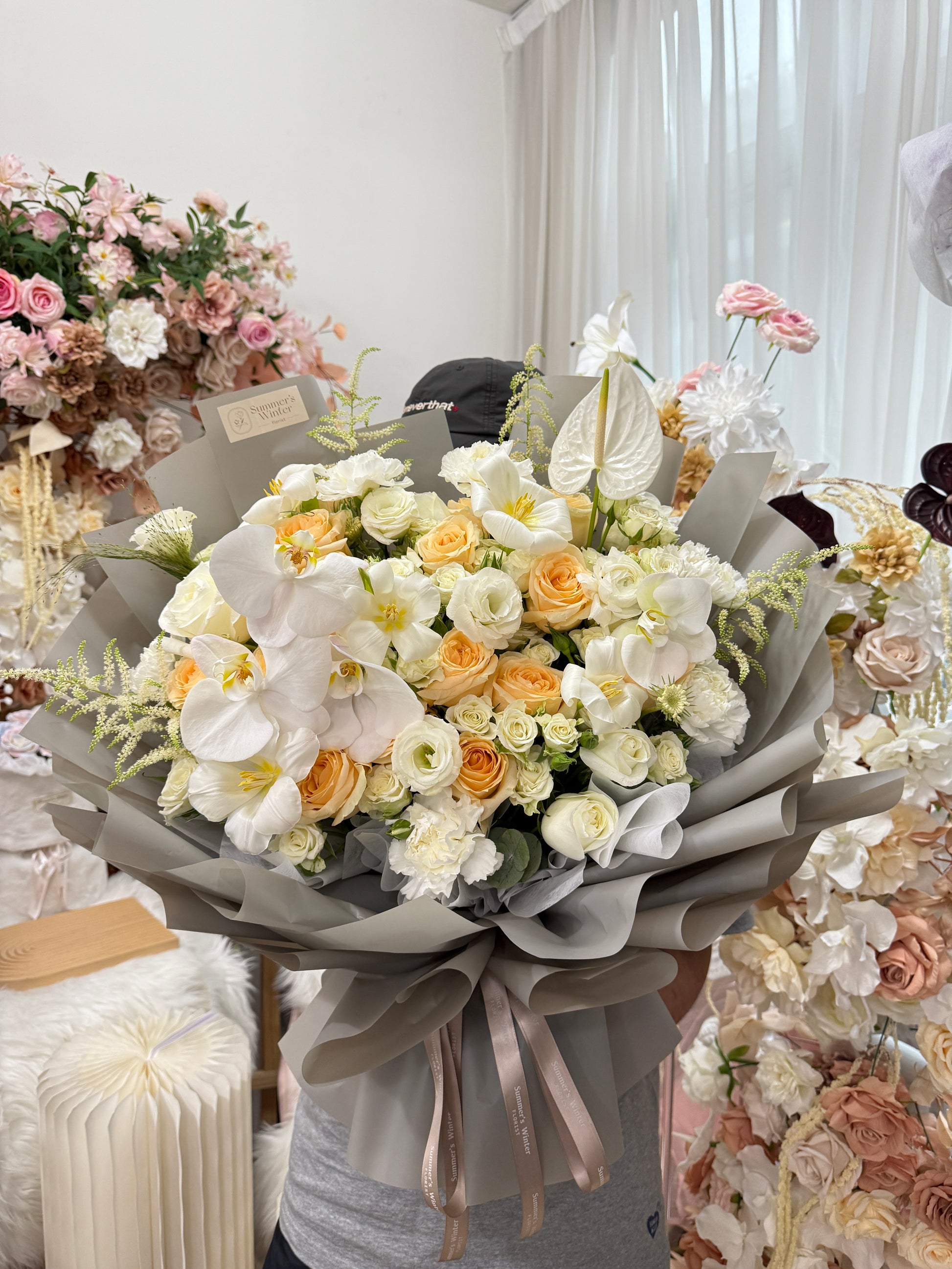Do note that all product images are for illustration purposes, actual products may vary in size and placing of wrapping papers/flowers because every bouquet is hand wrapped. We are unable to provide an exact 1:1 replicate of the bouquet seen in the photo. Nevertheless, we will do our best to deliver the products as accurately as possible.