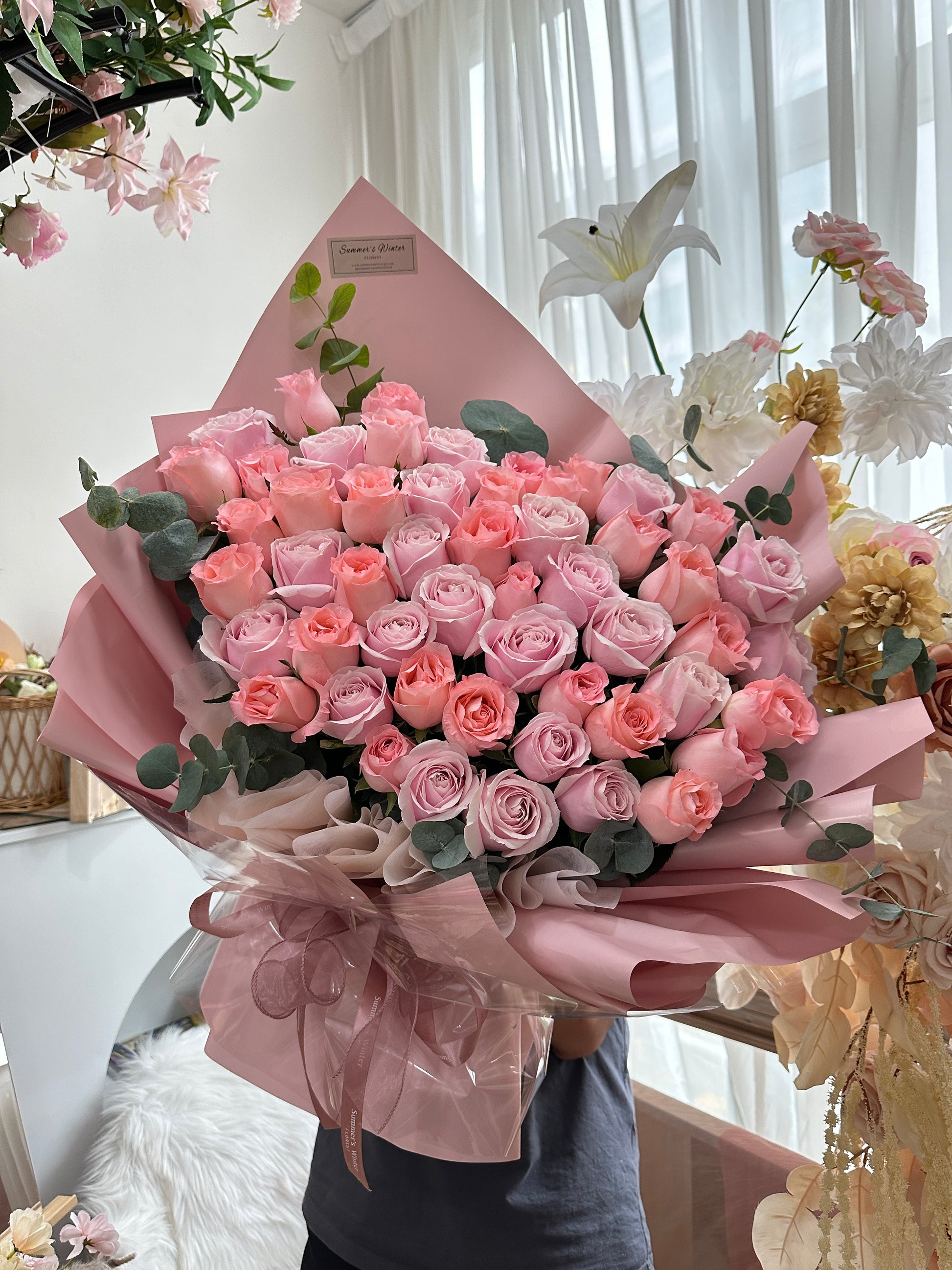 Do note that all product images are for illustration purposes, actual products may vary in size and placing of wrapping papers/flowers because every bouquet is hand wrapped. We are unable to provide an exact 1:1 replicate of the bouquet seen in the photo. Nevertheless, we will do our best to deliver the products as accurately as possible.