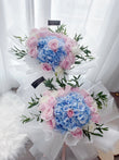 An ensemble of fresh pink roses and blue hydrangeas, swathed in translucent paper, ready for any occasion. What could possibly go awry? Our expertly curated and carefully crafted bouquet is the pinnacle of perfection for any hydrangea flower bouquet lover! Looking for the ideal gift? Look no further!