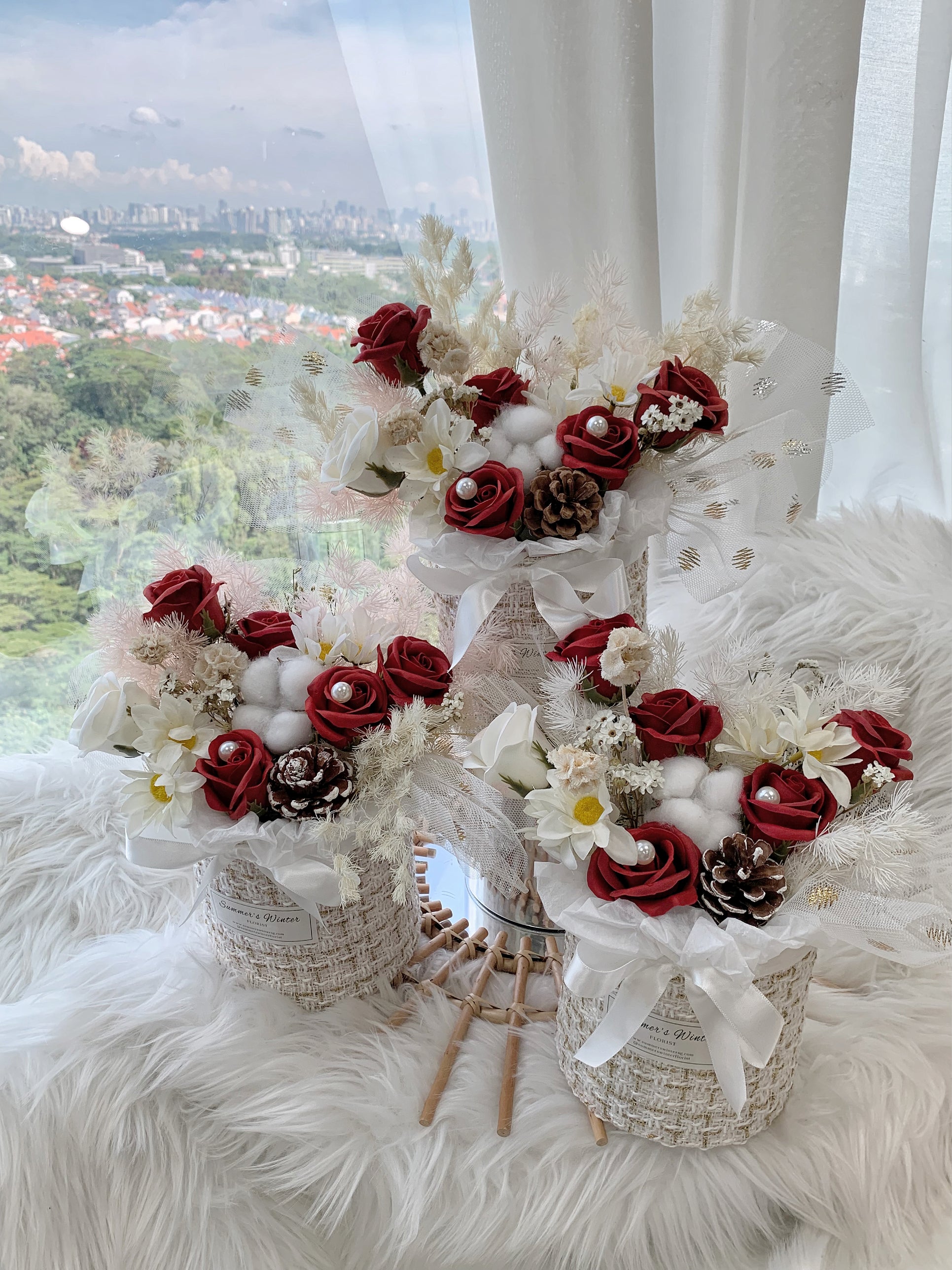 RED SOAP ROSES WITH PRESERVED FLOWERS AND FILLERS